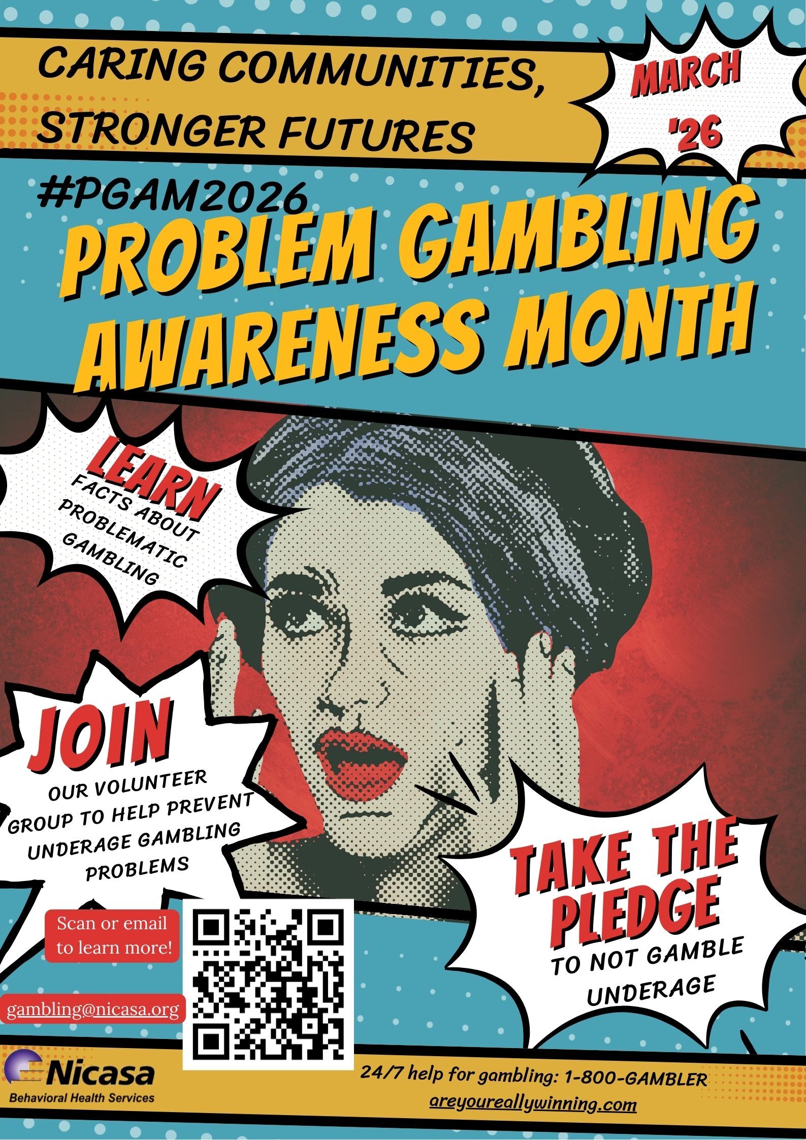 We are encouraging local young people during PGAM to take a pledge not to gamble underage. Those who take the pledge will be provided with stats about underage gambling and a resource sheet with tips for navigating gambling decisions.